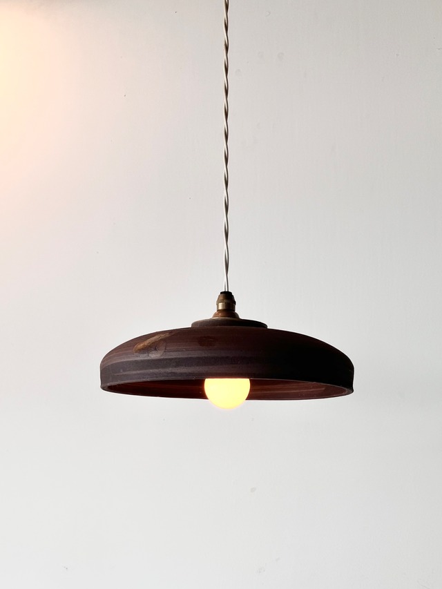 小鹿田焼ランプシェード PSEマーク 大分県日田市の山奥にある小鹿田焼の里 そこで9軒の窯元が300年前から脈々とやきものを作り続けています 小鹿田焼で使用されている土は、小鹿田焼の里にある山から掘り出した土を、川の流れを利用した唐臼で挽き、漉したり乾かしたり練ったり、たくさんの時間と多くの作業工程を経て作り上げています また収縮率の高い粘土だけで形成し、焼き上げていくということは技術的に大変困難であり失敗やロスが多く出るために、現在では全国的に多くのやきものに化学物質などの混合物が土に混ぜて作られています そうすることにより薄くて軽く割れにくいやきものがロスなく作れるという特徴やメリットがあります ただ小鹿田焼では土に混合物は一切使わず、小鹿田で取れた土だけでやきものを作るという昔ながらのやり方で作陶し続けています また作陶以外にも小鹿田の9軒の窯元たちが全員で行なっているご神事など年間行事が多数あり、自然と向き合って生きてきた昔ながらの生活や作陶スタイルを続けています そのような非効率的なスタイルや考え方自体が小鹿田焼の特徴であると言えます ”無駄と思われることがたくさんある生活、でもそのリズムからしか生まれないもの” その象徴である”小鹿田の土” 小鹿田焼ランプシェードはとても優しい反射の灯りです このランプシェードは日田市豆田町にある水処稀荘という1棟貸切りの宿の特別和室”ムの間”で使用されているものです これは”トビガンナ”という小鹿田焼の代表的な模様が入ったもので本焼きされたもの 他のランプシェードとは違ってこちらは釉薬をつけて本焼きされたものなので、素焼きと比べると艶もあり、土も黒っぽく引き締まった表情 サイズも本焼きすることにより収縮され、ひとまわり小さくなっている 一般的に目にしている小鹿田焼本来の姿で作られています サイズ W 210mm x H 50mm 口金のサイズ E17 重さ 約700グラム 電球は小鹿田焼ランプシェードの意匠を引き立てるLED電球を2つお付けします お好みの方をお使いください 基本的には部屋全体を照らす照明というより、部屋内に他の照明がありスポットやカウンターライトのような補助的な役割で使用する明るさです 替えの電球もこちらのサイトで購入できます またコードの長さ(器具の最上部から最下部までの全長)を50センチ、100センチから選べ、コードの長さ調節ができるコードストッパーもお付けしています それ以外の長さにも対応できますので、ご希望の場合はお問い合わせください 天井の釣り元は引掛シーリングです 小鹿田焼ランプシェードオリジナルの箱でお届けしますのでギフトにも最適です また小鹿田焼ランプシェードは年に数回の窯焼きの時期により製作されます 在庫が0の場合は次の窯焼きでの制作になります 再入荷待ちの際にはご予約を受け付けておりますのでお問い合わせください