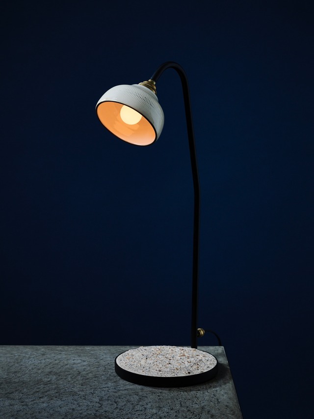 小鹿田焼の里で川の流れ を利用し陶土を粉砕する 道具「唐臼」をイメージ した照明器具です。 (小鹿田焼協同組合公認) PSEマーク 小鹿田焼の唐臼から着想を得たデスクスタンド。鉄の支柱は唐臼の形をイメージして試作を重ねていくうちにシンプルな形にたどり着きました。ライトの台座には唐臼の下にある粉砕された陶土や川の石や小鹿田焼の残土を利用し、左官職人が伝統工法を用いて仕上げの風合いを追求しました。照明の灯りを眺めていると唐臼のある小鹿田の風景が思い浮かびます。 こちらは台座を小鹿田焼きの排土から出てくる天然鉱石を使用して、左官の磨き仕上げしたものです サイズ(H600xW200xD250) 電球サイズ E26 LED電球とシルバーボールを1つずつお付けします。 贈り物にも最適です