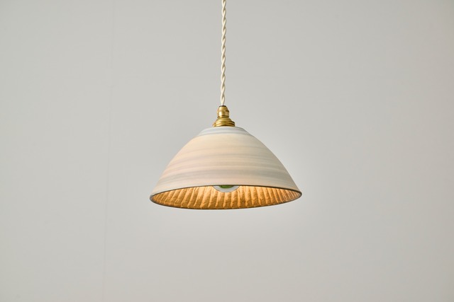 小鹿田焼ランプシェード PSEマーク 大分県日田市の山奥にある小鹿田焼の里 そこで9軒の窯元が300年前から脈々とやきものを作り続けています 小鹿田焼で使用されている土は、小鹿田焼の里にある山から掘り出した土を、川の流れを利用した唐臼で挽き、漉したり乾かしたり練ったり、たくさんの時間と多くの作業工程を経て作り上げています また収縮率の高い粘土だけで形成し、焼き上げていくということは技術的に大変困難であり失敗やロスが多く出るために、現在では全国的に多くのやきものに化学物質などの混合物が土に混ぜて作られています そうすることにより薄くて軽く割れにくいやきものがロスなく作れるという特徴やメリットがあります ただ小鹿田焼では土に混合物は一切使わず、小鹿田で取れた土だけでやきものを作るという昔ながらのやり方で作陶し続けています また作陶以外にも小鹿田の9軒の窯元たちが全員で行なっているご神事など年間行事が多数あり、自然と向き合って生きてきた昔ながらの生活や作陶スタイルを続けています そのような非効率的なスタイルや考え方自体が小鹿田焼の特徴であると言えます ”無駄と思われることがたくさんある生活、でもそのリズムからしか生まれないもの” その象徴である”小鹿田の土” 小鹿田焼ランプシェードは”小鹿田の土”そのものの素材感を味わうことができる、とても優しい灯りです これはボウル型のシンプルなランプシェード 外側は素焼きの土色と白 内側の模様は控えめに入っていて、"トビガンナ"と"ハケ"の小鹿田焼の代表的な2つの模様から選べる 間接照明になる特殊なLED電球を使用していて、直接電球やランプシェードを眺めていられるように施してある またランプシェイドから映し出される灯りもやさしく暖かい 仕上げに天然植物オイルを塗って保護しています 艶の出ないマッドな仕上がりで素焼きの土の風合いが損なわれず、汚れ防止とお手入れができるように施してあります サイズ W 230mm x H 80mm 電球はボウル型ランプシェード専用の特殊LED電球をお付けします またコードの長さ(器具の最上部から最下部までの全長)を50センチ、100センチから選べ、コードの長さ調節ができるコードストッパーもお付けしています それ以外の長さにも対応できますので、ご希望の場合はお問い合わせください 天井の釣り元は引掛シーリングです 小鹿田焼ランプシェードオリジナルの箱でお届けしますのでギフトにも最適です また小鹿田焼ランプシェードは年に数回の窯焼きの時期により製作されます 在庫が0の場合は次の窯焼きでの制作になります 再入荷待ちの際にはご予約を受け付けておりますのでお問い合わせください