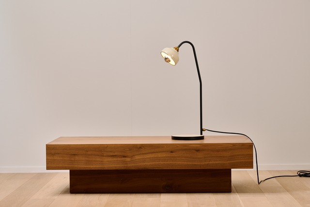 小鹿田焼の里で川の流れ を利用し陶土を粉砕する 道具「唐臼」をイメージ した照明器具です。 (小鹿田焼協同組合公認) PSEマーク 小鹿田焼の唐臼から着想を得たデスクスタンド。鉄の支柱は唐臼の形をイメージして試作を重ねていくうちにシンプルな形にたどり着きました。ライトの台座には唐臼の下にある粉砕された陶土や川の石や小鹿田焼の残土を利用し、左官職人が伝統工法を用いて仕上げの風合いを追求しました。照明の灯りを眺めていると唐臼のある小鹿田の風景が思い浮かびます。 こちらは台座を小鹿田焼きの排土から出てくる天然鉱石を使用して、左官の磨き仕上げしたものです サイズ(H600xW200xD250) 電球サイズ E26 LED電球とシルバーボールを1つずつお付けします。 贈り物にも最適です