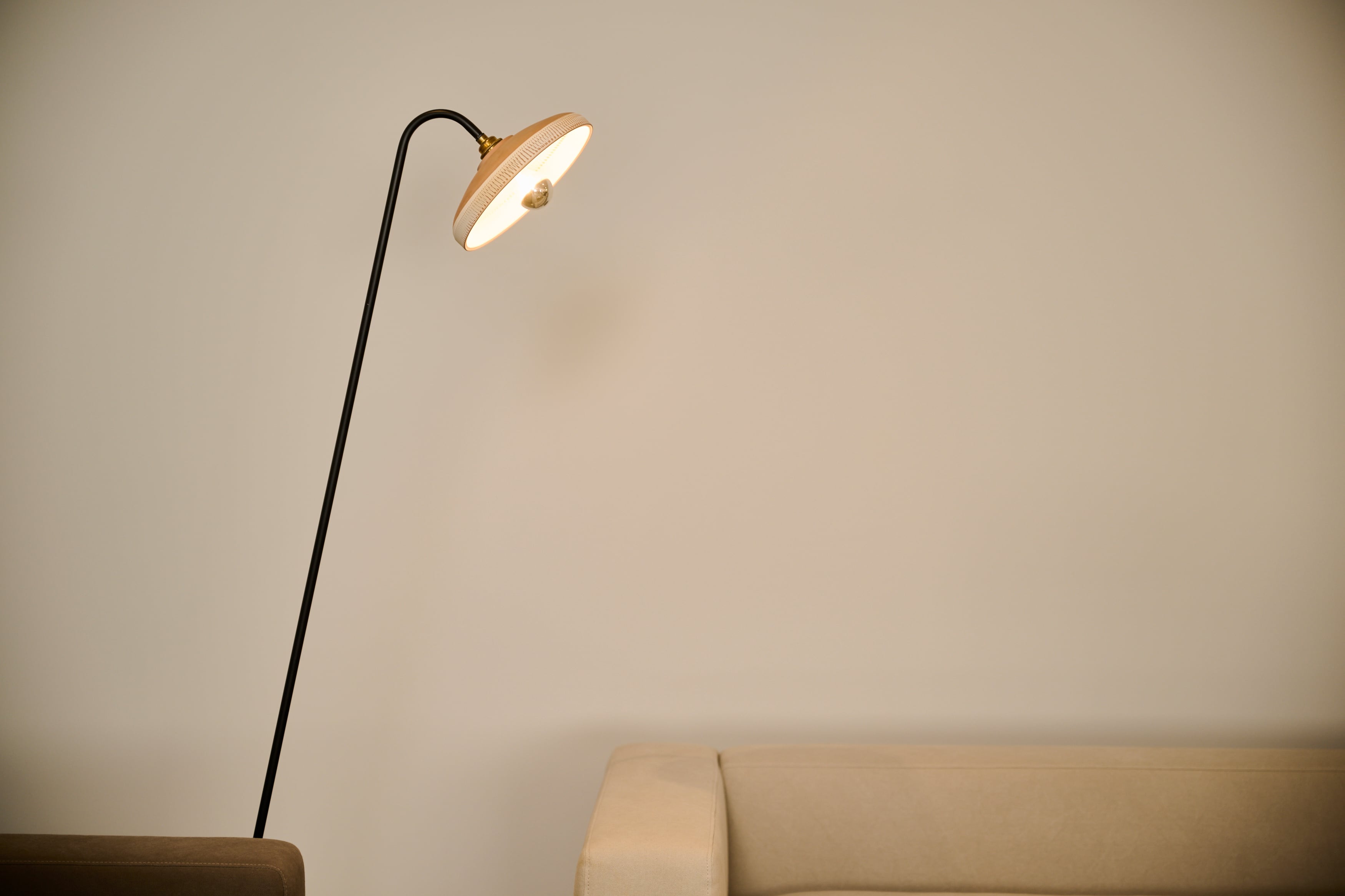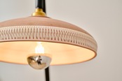 持ち運びができるスランドライトは、小鹿田焼のシェードをしっかり眺めることができます。