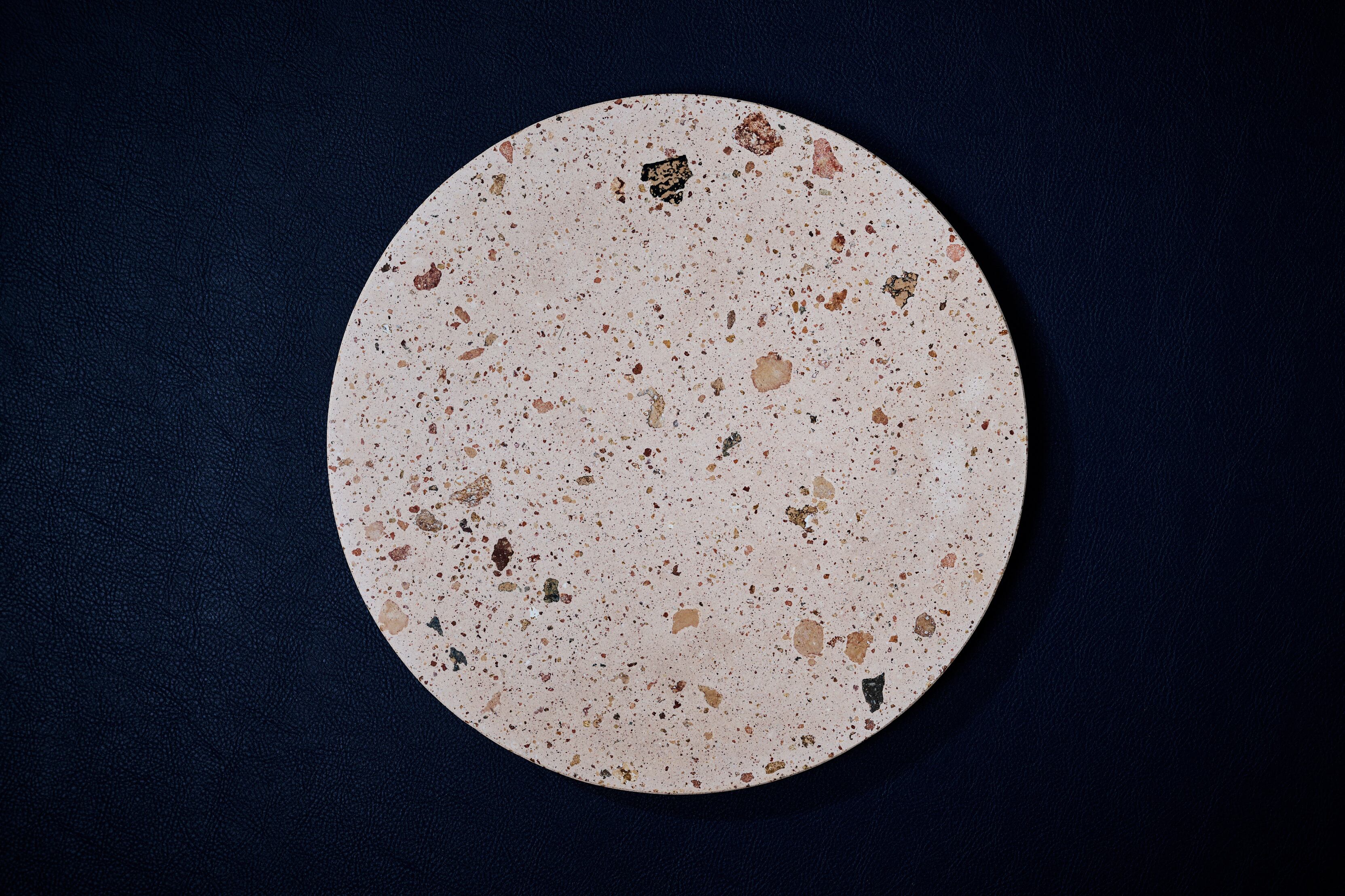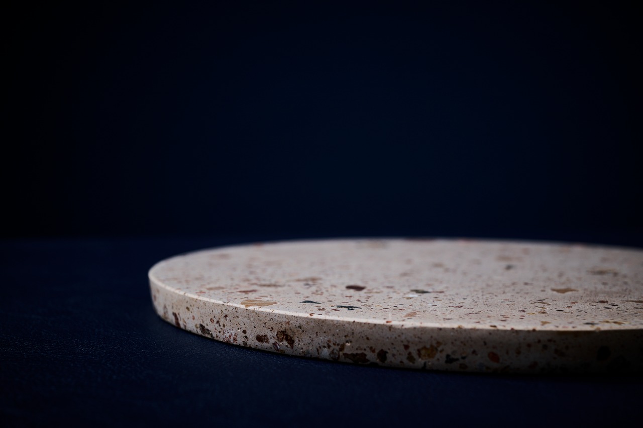 小鹿田焼を生成する際に出てくる廃土を使用して左官職人が研ぎ出し施工で作るプレートです。