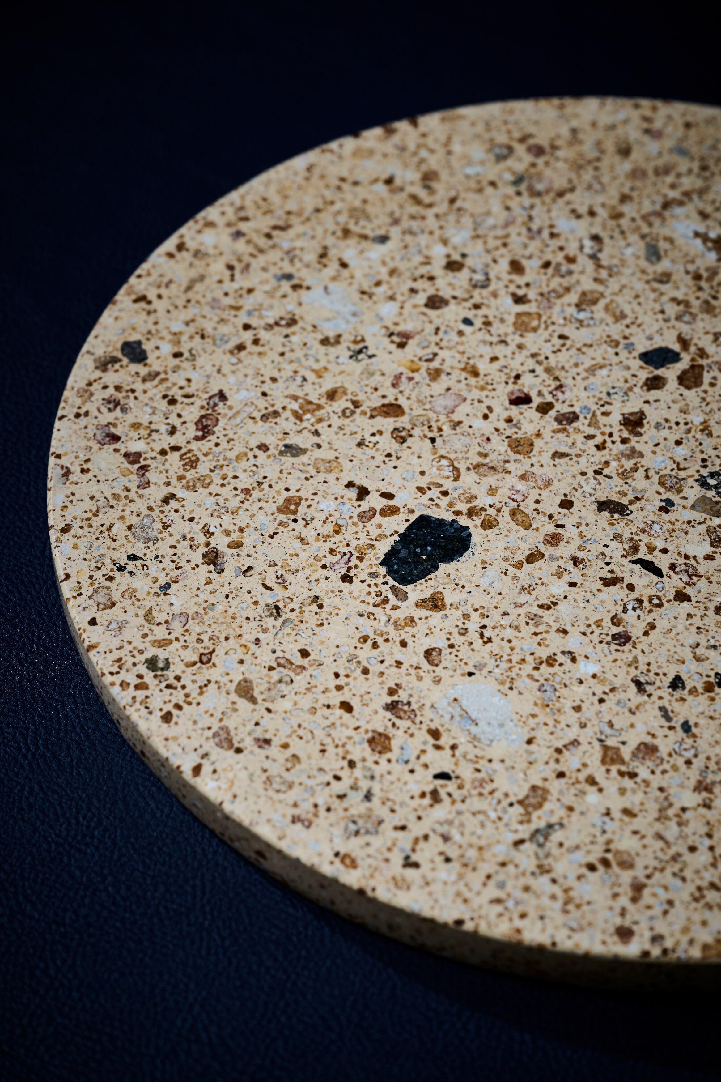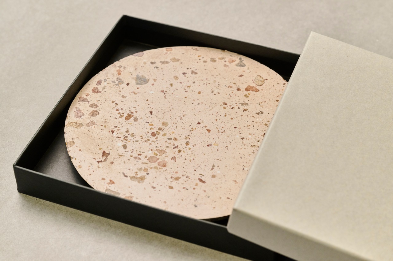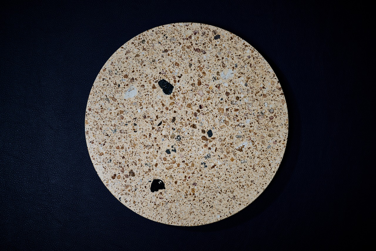 小鹿田焼を生成する際に出てくる廃土を使用して左官職人が研ぎ出し施工で作るプレートです。