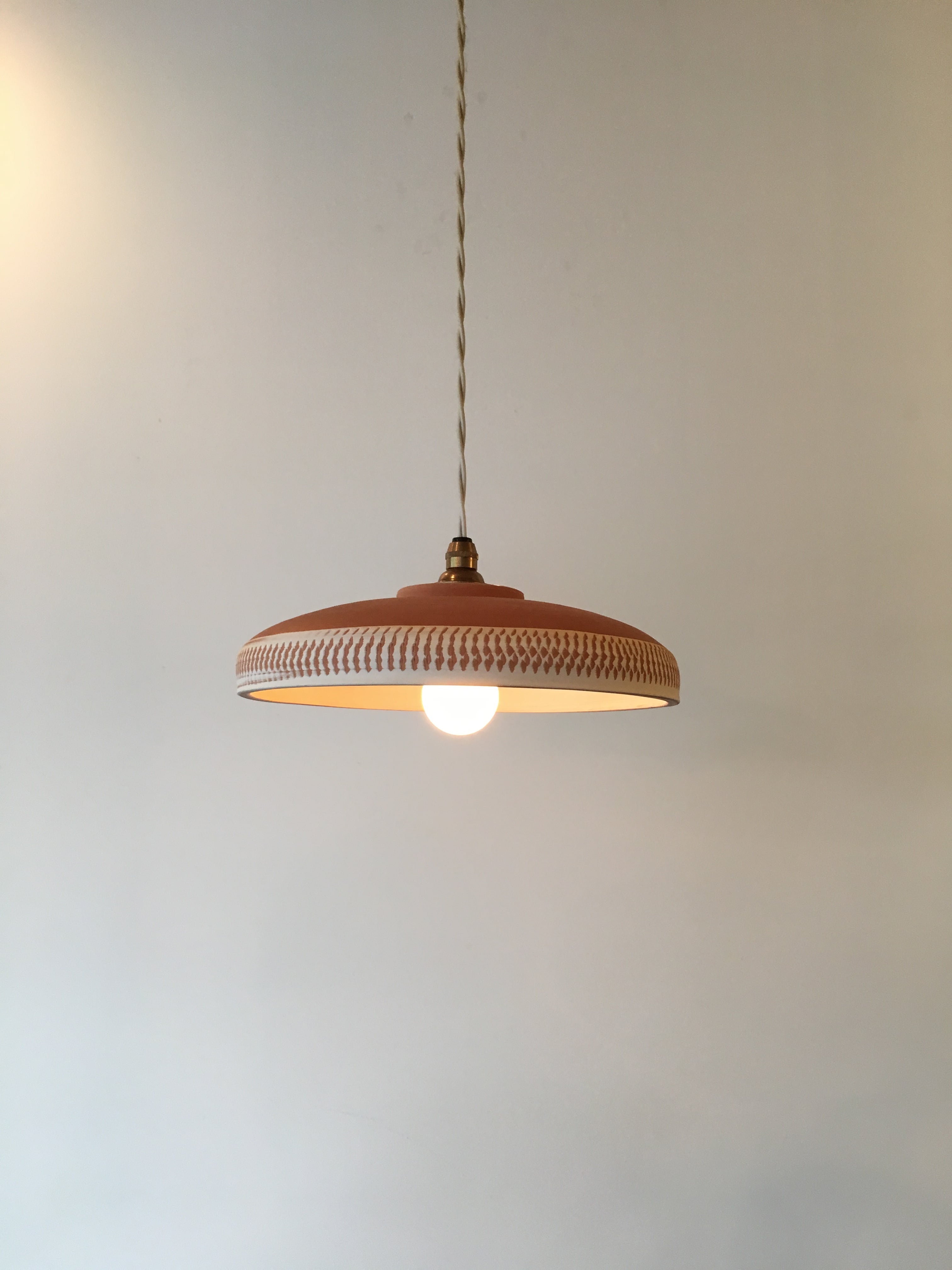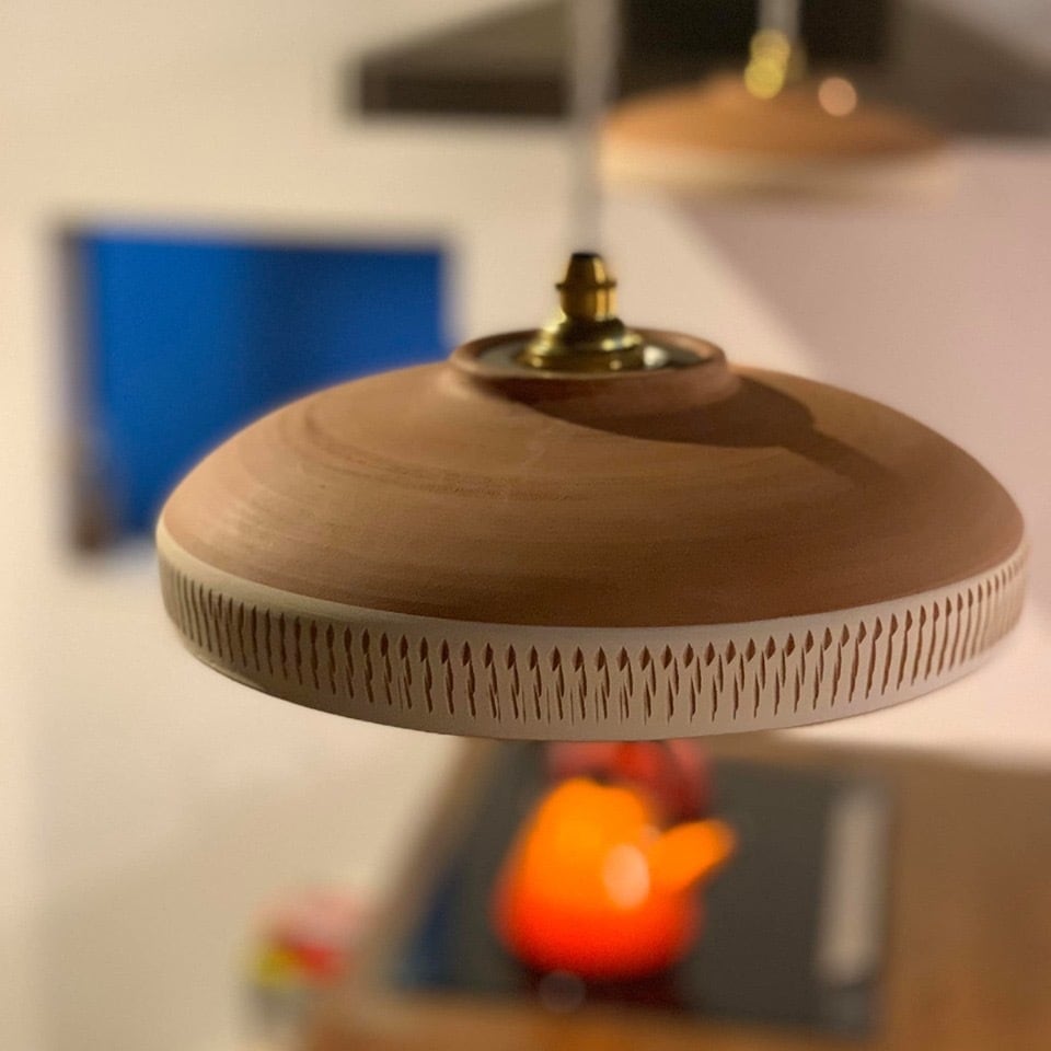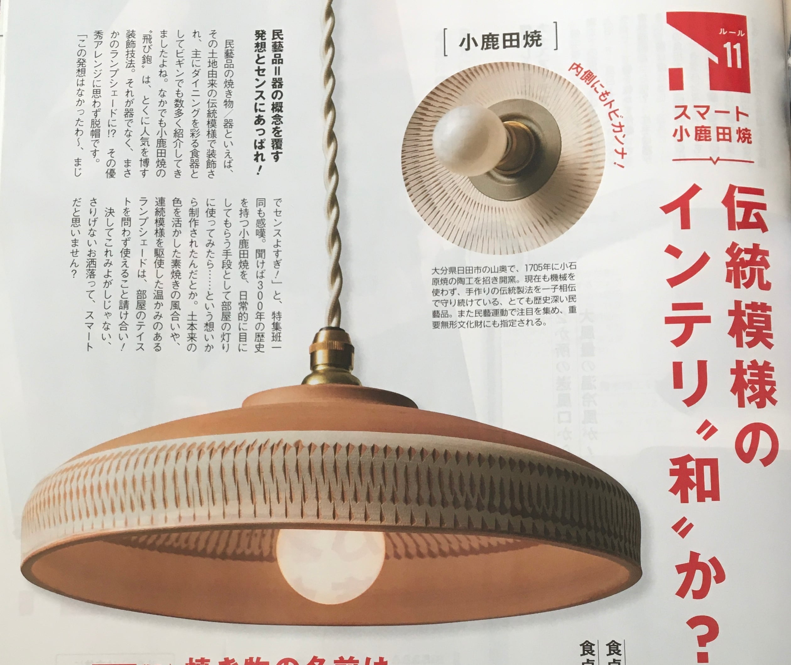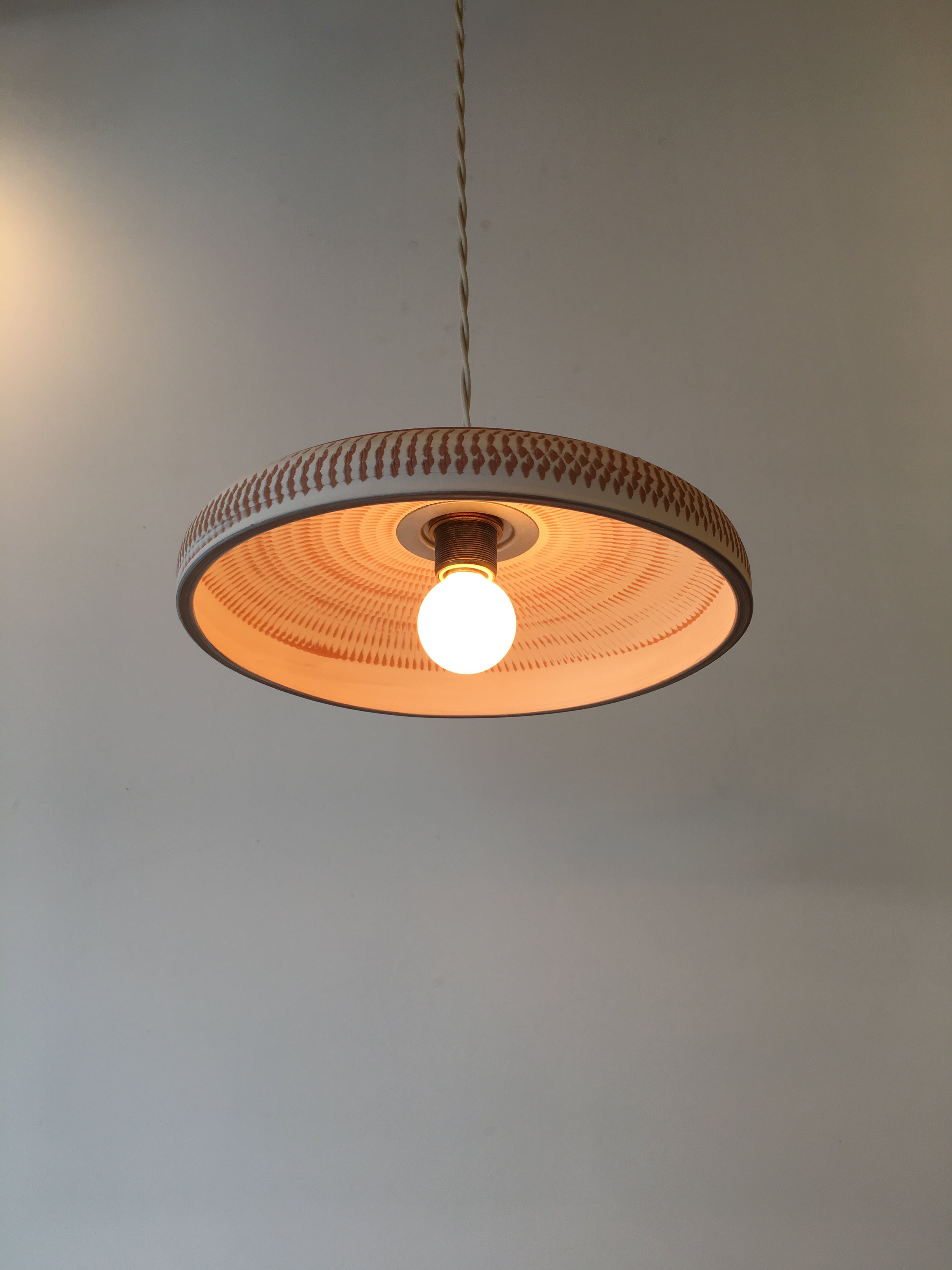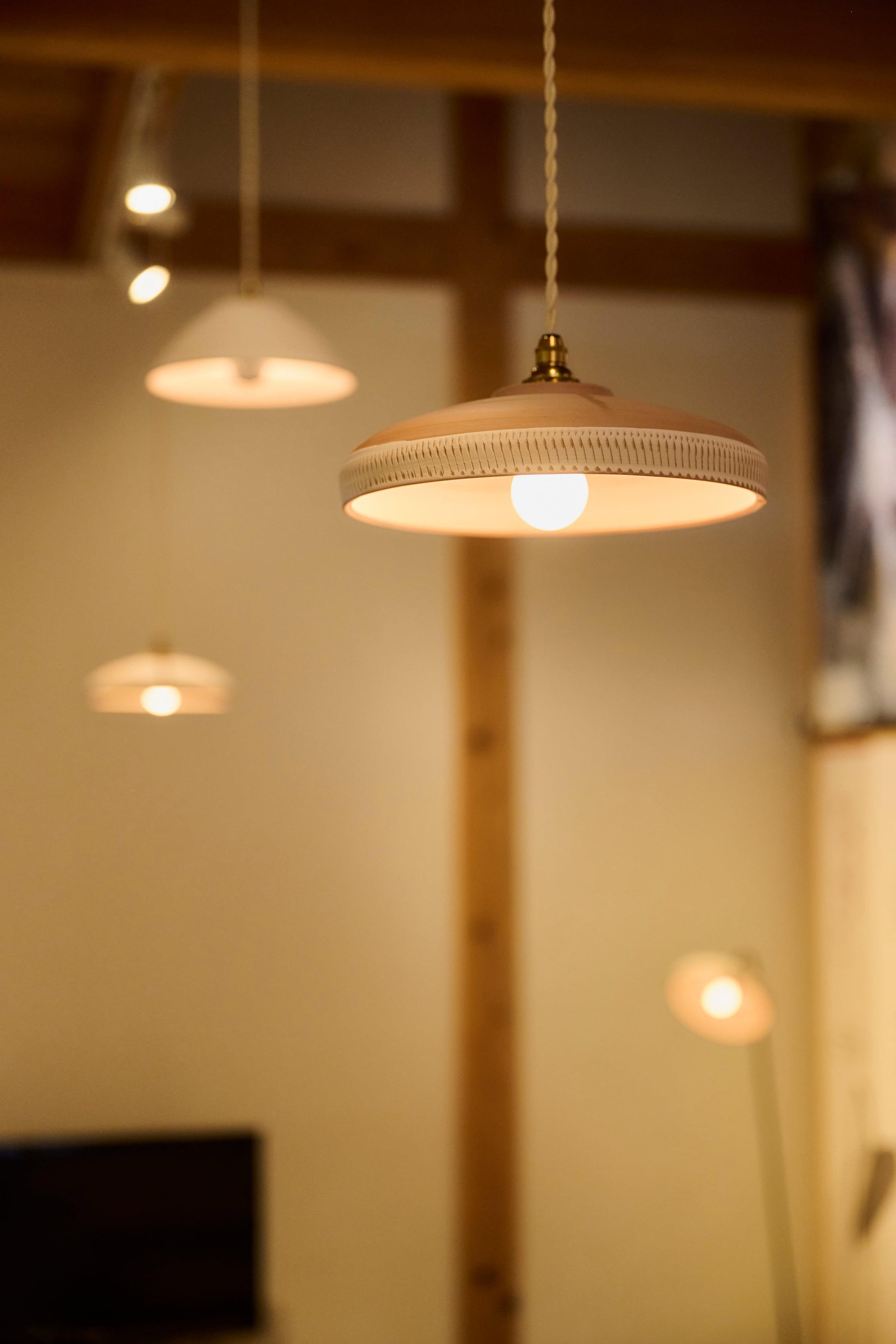 小鹿田焼ランプシェードは”小鹿田の土”そのものの素材感を味わうことができる、とても優しい灯りです