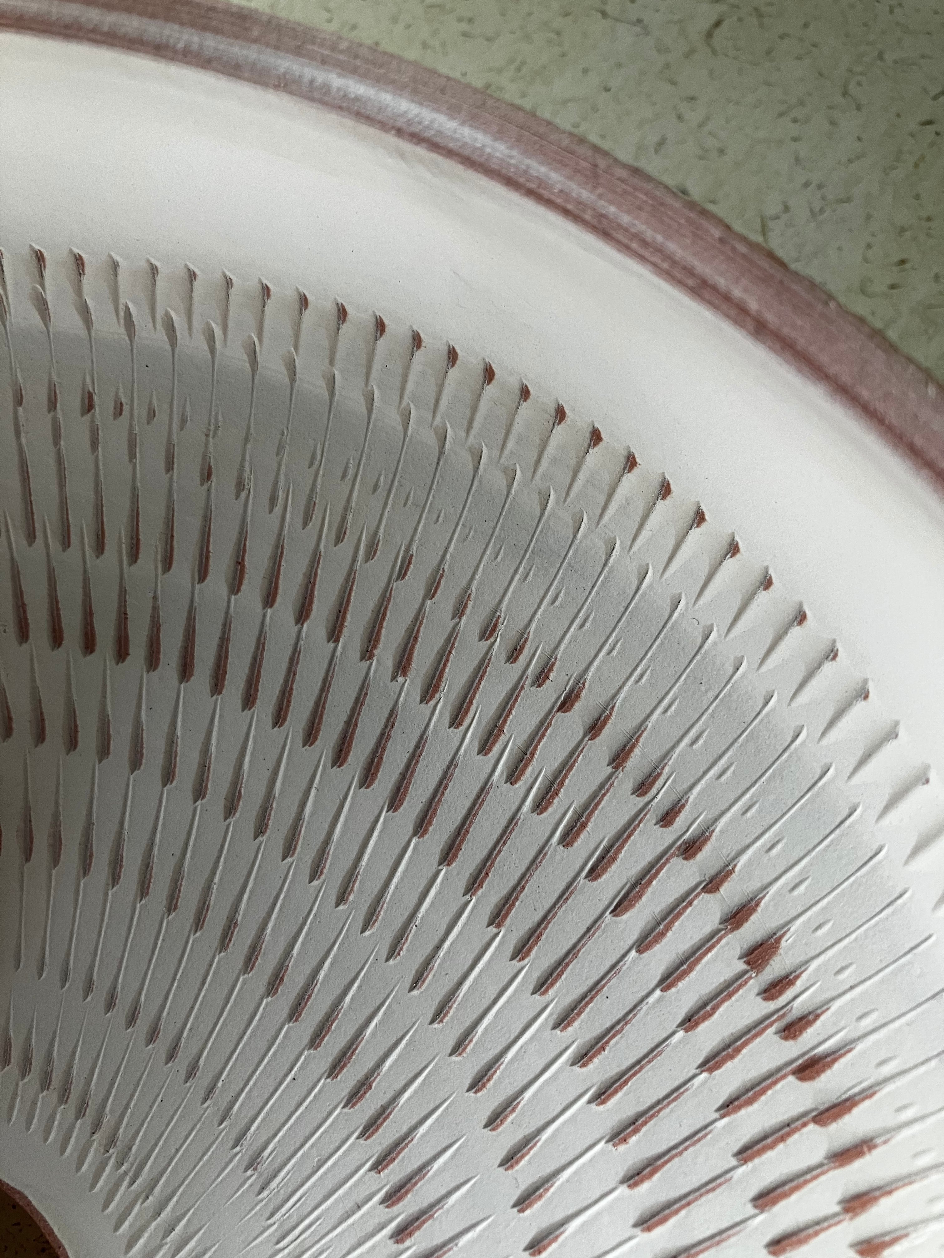 これは素焼きが完成状態なので、本来なら本焼きしたものしか器としては世に出ないために小鹿田焼として非常に珍しいもの