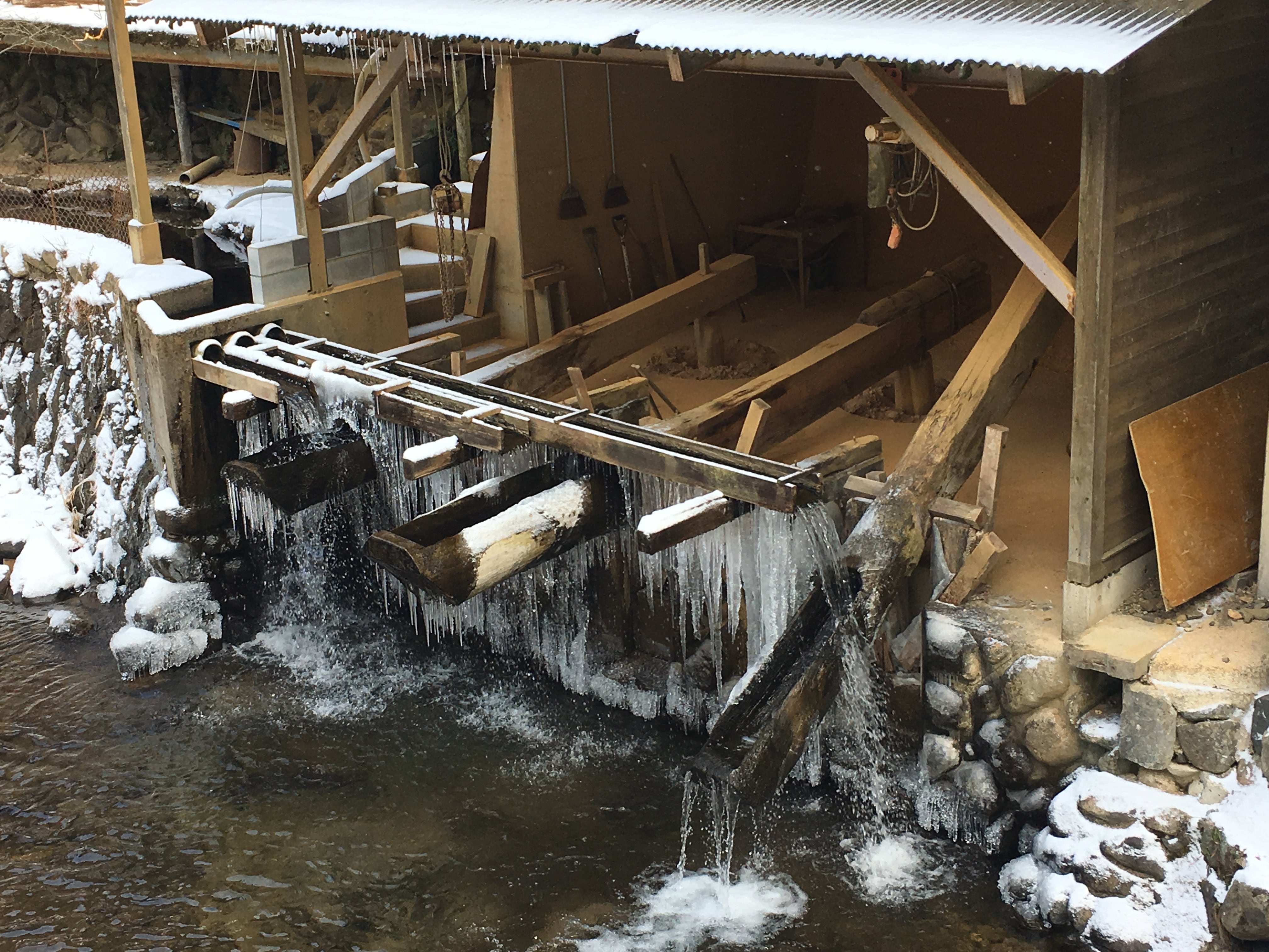 小鹿田焼で使用されている土は、小鹿田焼の里にある山から掘り出した土を、川の流れを利用した唐臼で挽き、漉したり乾かしたり練ったり、たくさんの時間と作業工程を経て作り上げています