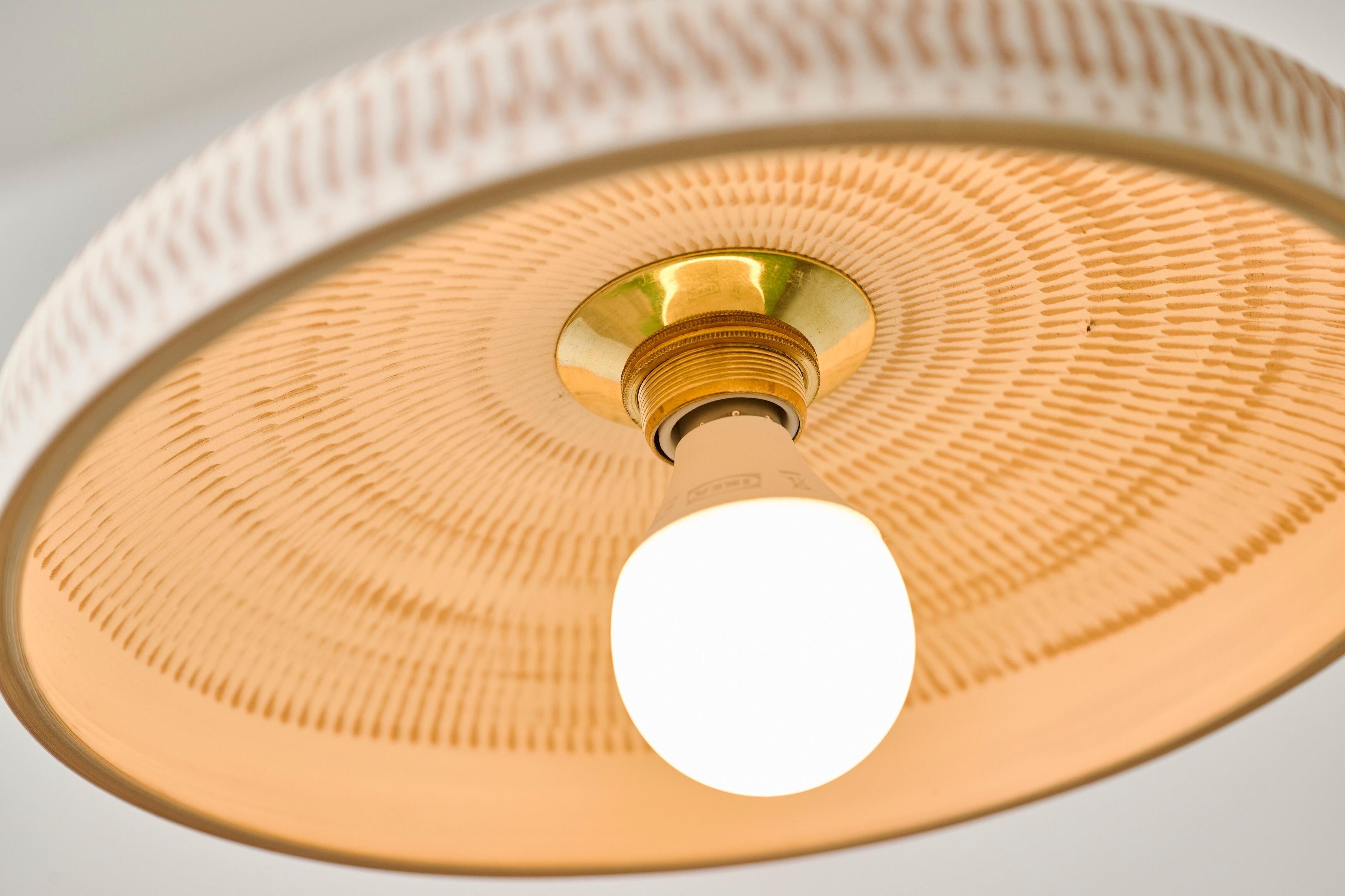 電球は小鹿田焼ランプシェードの意匠を引き立てるLED電球を2つお付けします