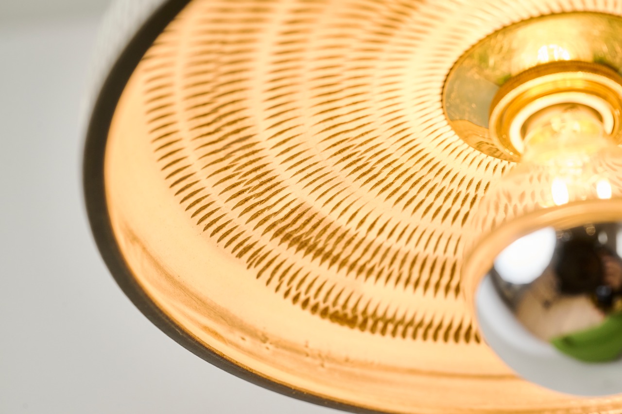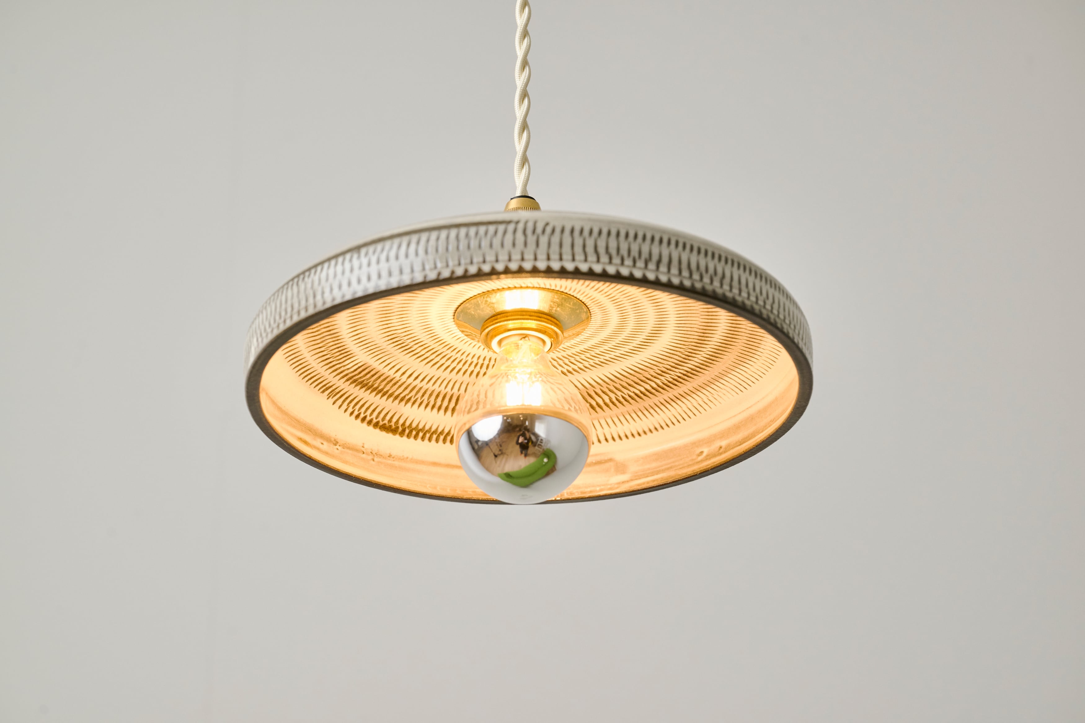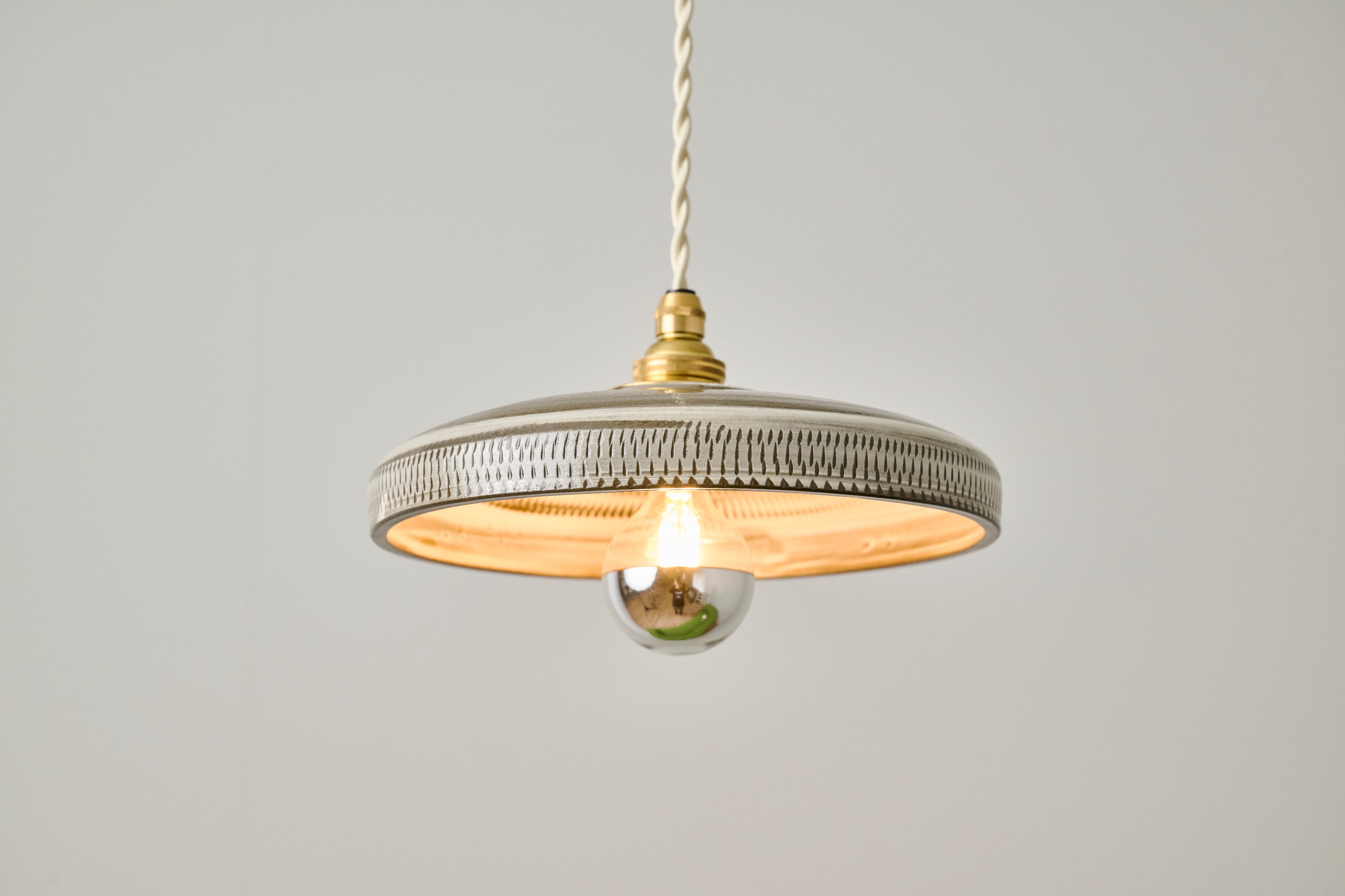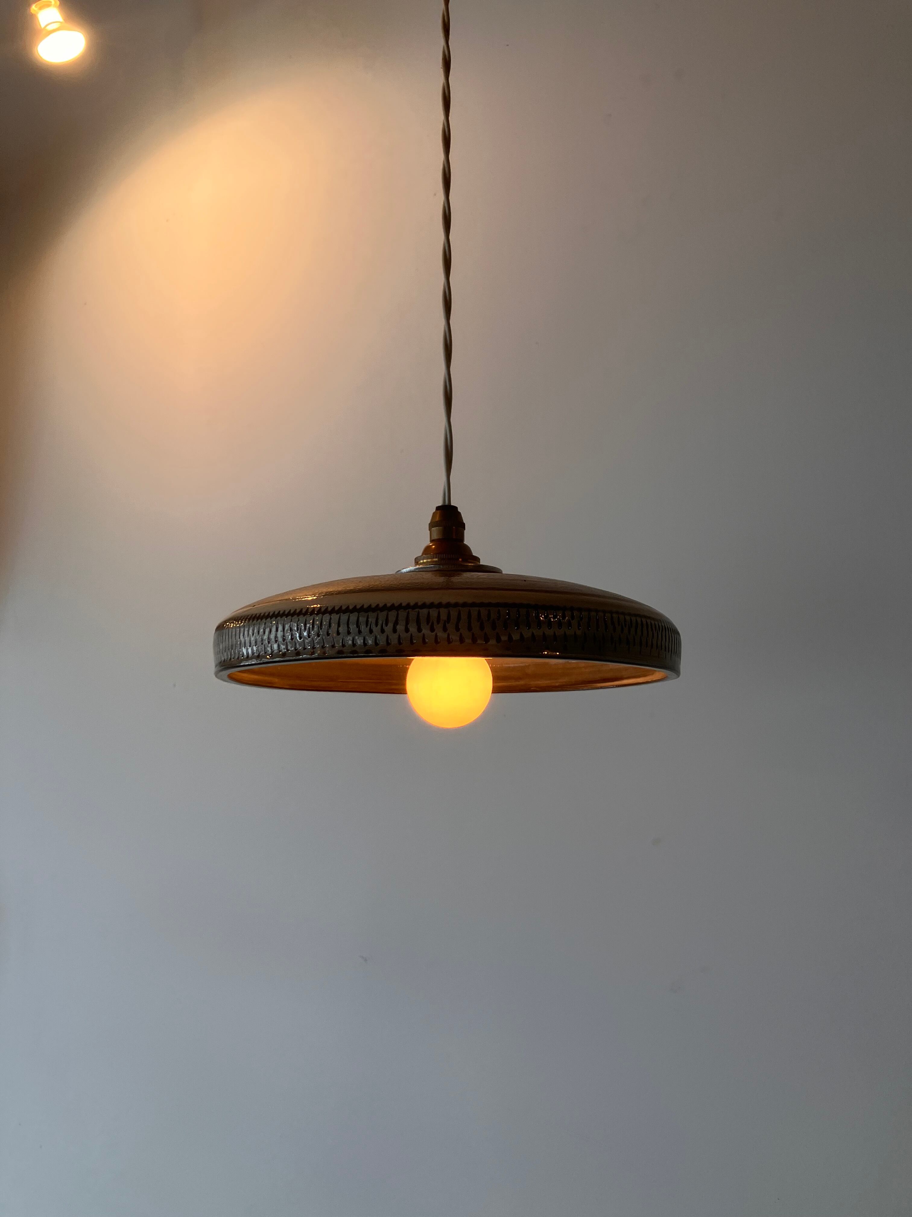 他のランプシェードとは違ってこちらは釉薬をつけて本焼きされたものなので、素焼きと比べると艶もあり、土も黒っぽく引き締まった表情