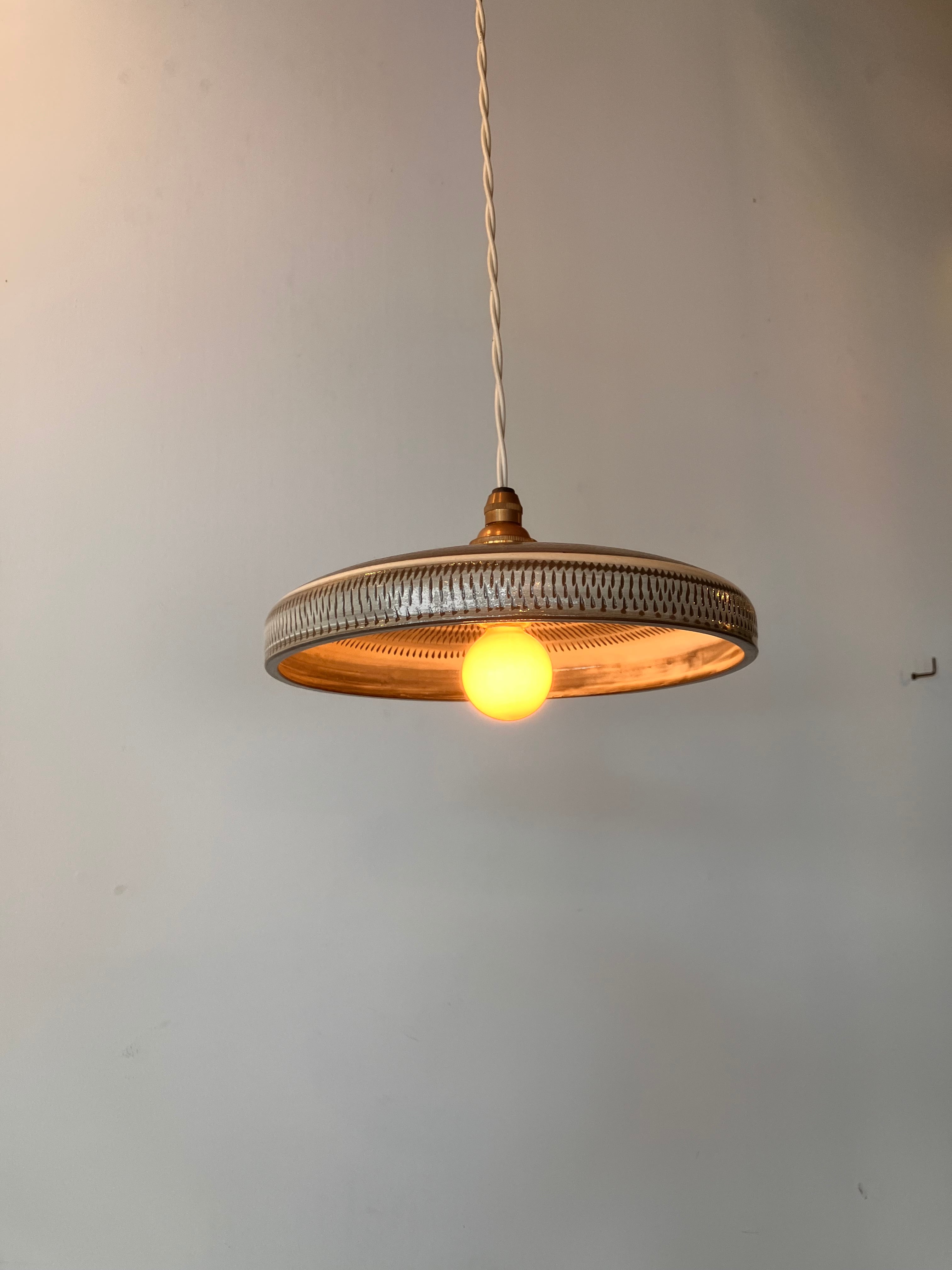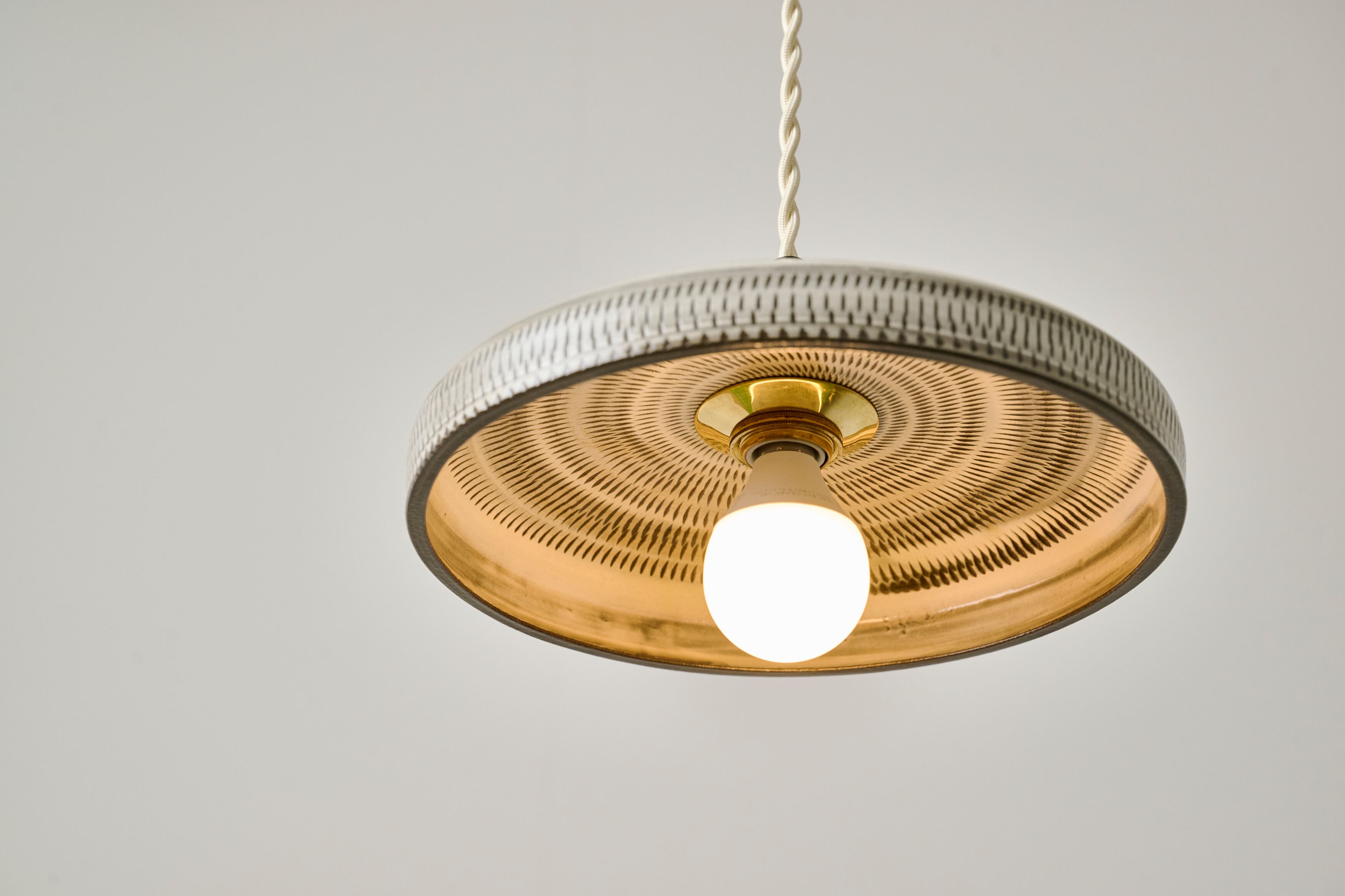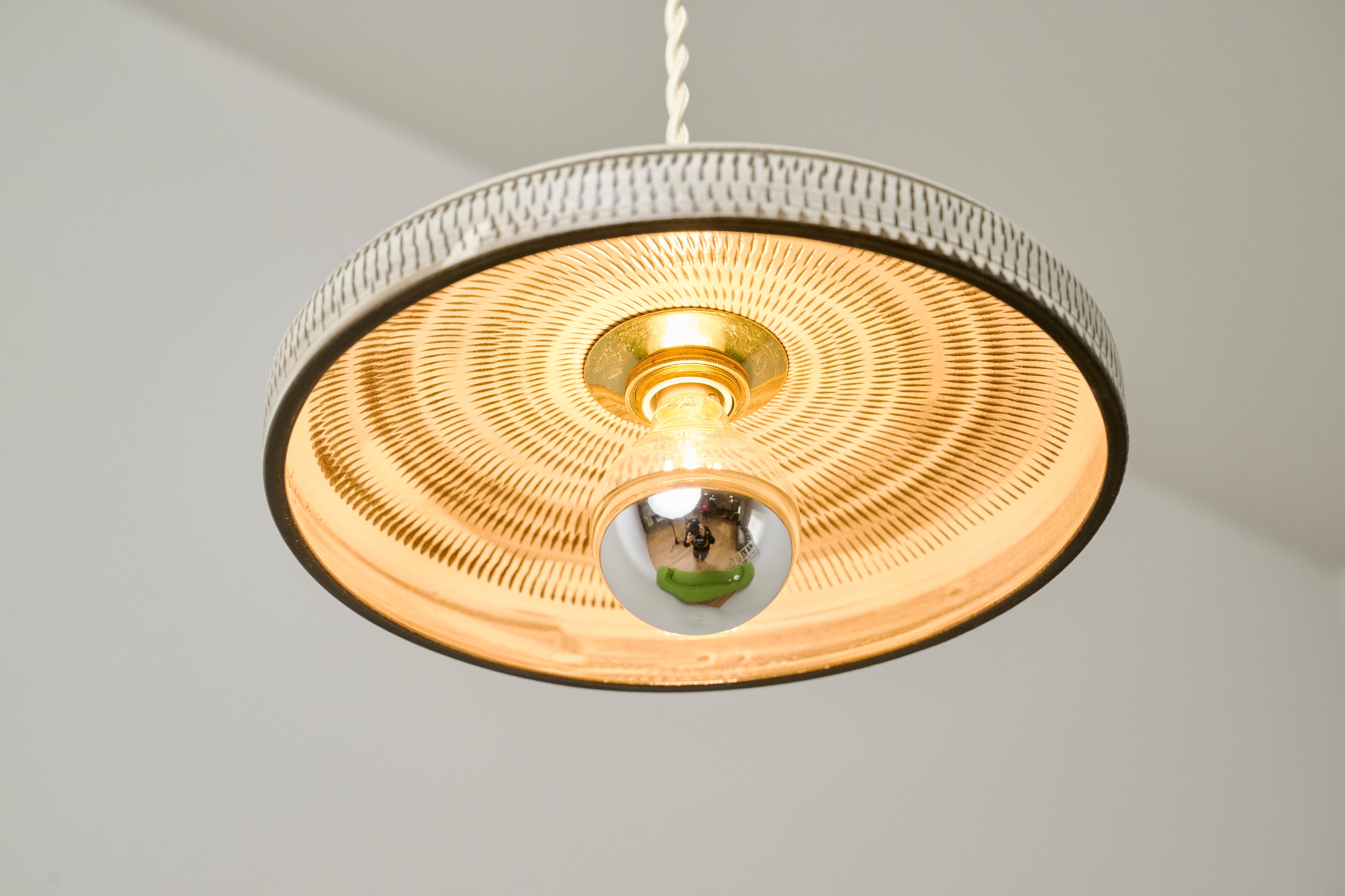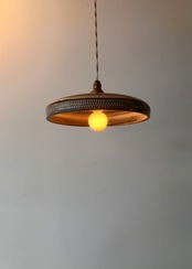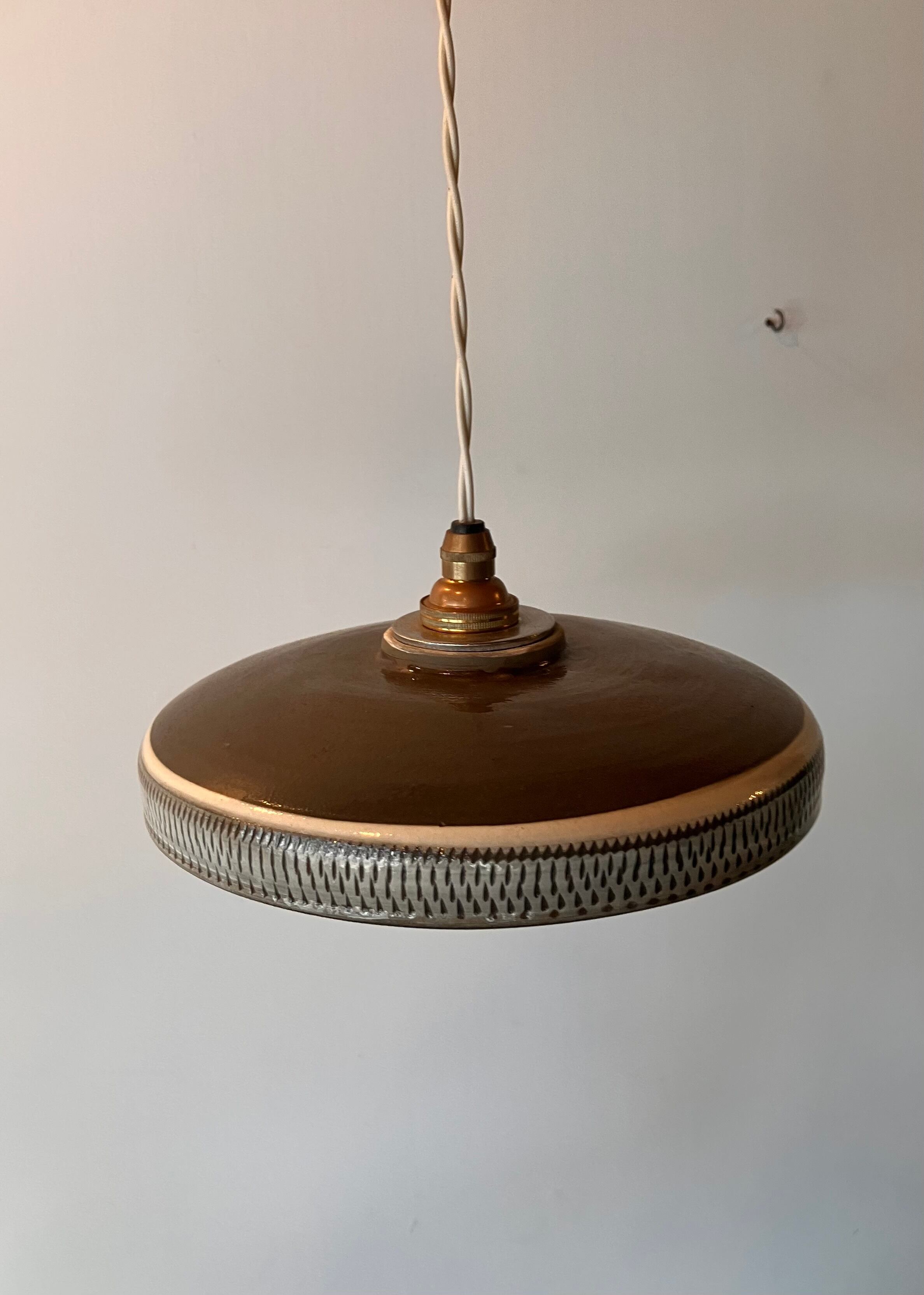 他のランプシェードとは違ってこちらは釉薬をつけて本焼きされたものなので、素焼きと比べると艶もあり、土も黒っぽく引き締まった表情