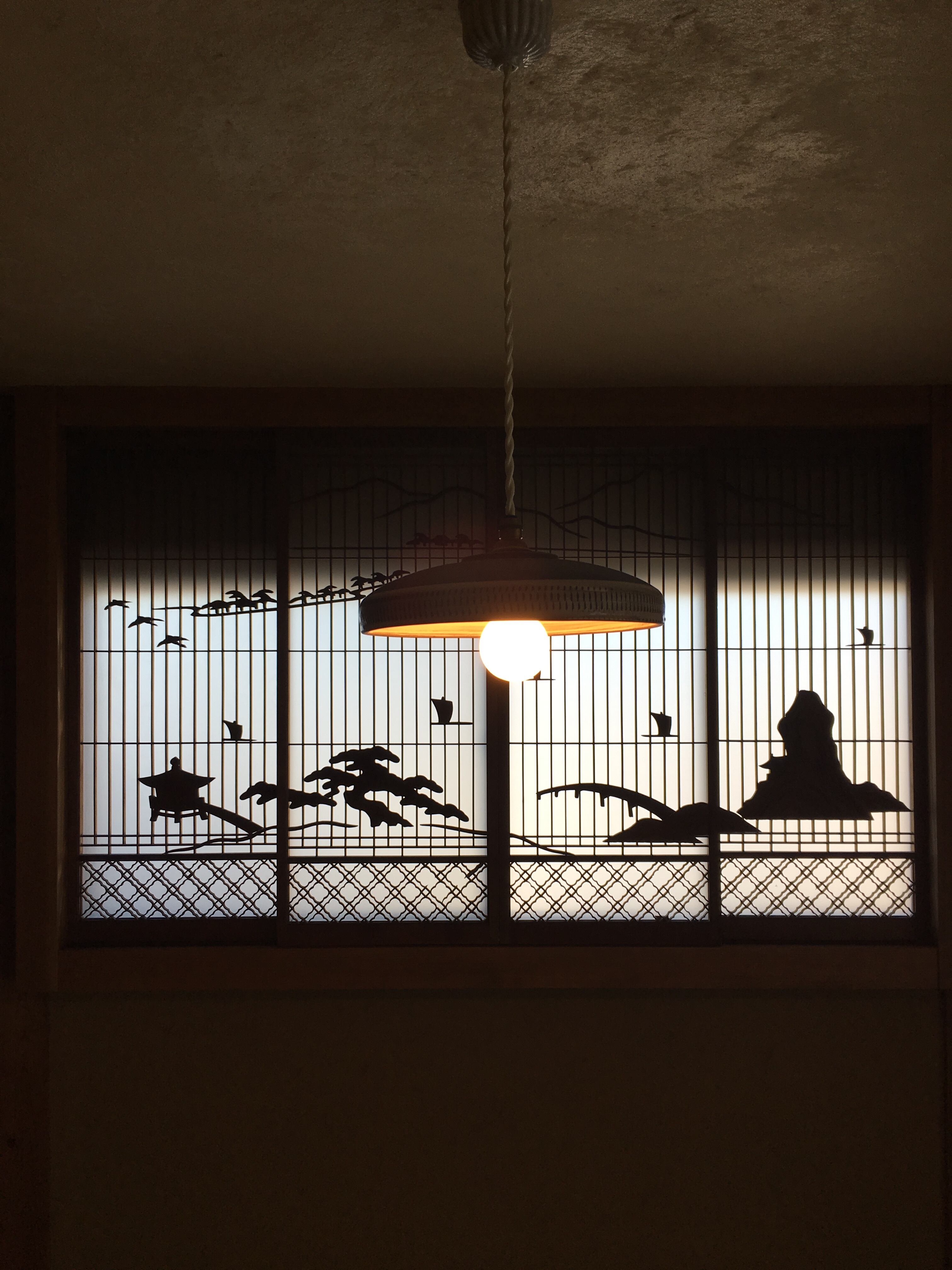 このランプシェードは日田市豆田町にある水処稀荘という1棟貸切りの宿の特別和室”ムの間”で使用されているものです