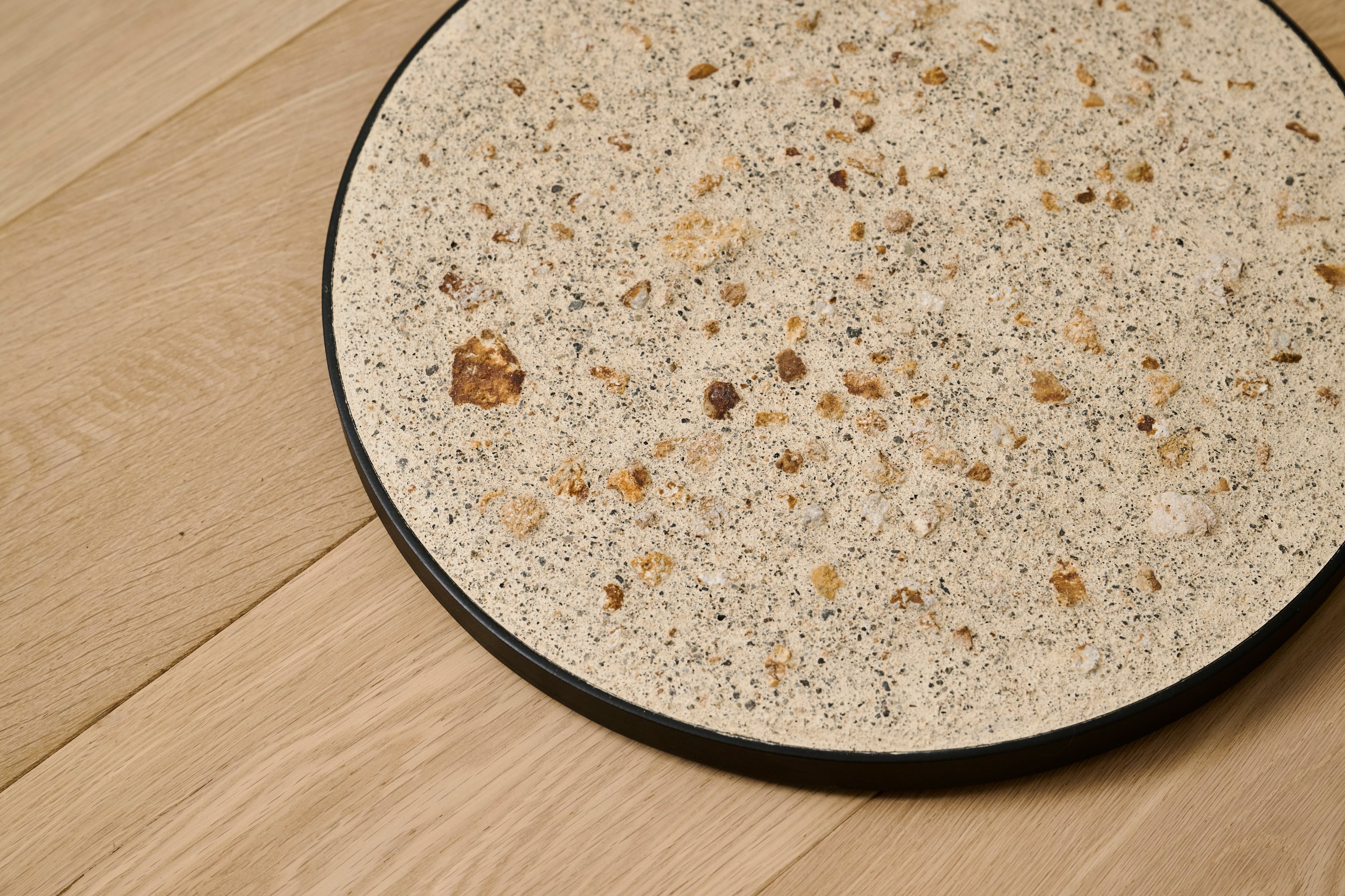 こちらは台座を小鹿田焼きの排土から出てくる天然鉱石を使用して、左官の洗い出し仕上げしたものです